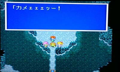 会話スタート。「バッツ?」って気付いてもらえたv なんか、周りは強いモンスターばっかりだし、出口はないしで混乱してたっぽ。そして、「5人で脱出を」って!きゃっほう!!って思ったのは私だけでしたorz バッツたちが無言だったからギルガメッシュが「そうだよな」ってorz 「次にあった時は俺も仲間、、、」って(;A;)いいじゃん!ギルガメッシュ仲間にしようよ!動かしたいよ(>A<)